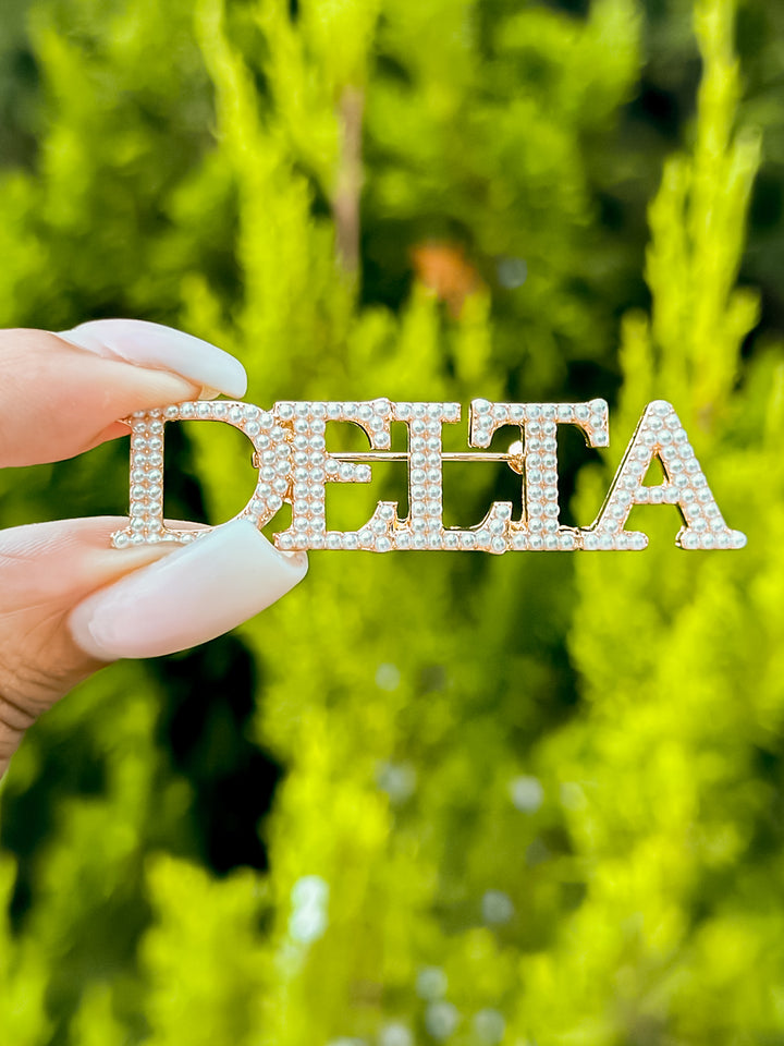♡ The Delta Pearl circle pin measures 1.75” inches in length. This pin is hard enamel & silver plating.