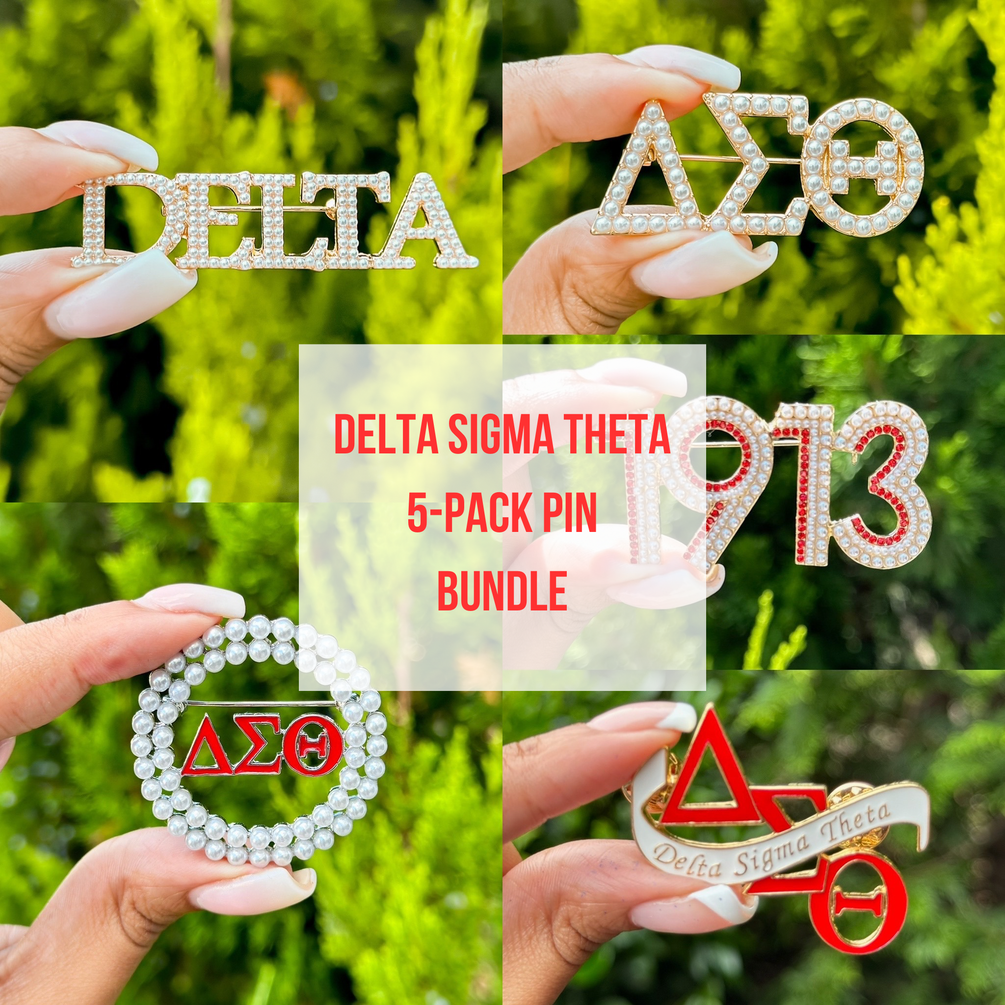 This cute Delta Sigma Theta Inspired 5-Pack Pin Bundle has been designed and created by us at Greek-ish & Co!