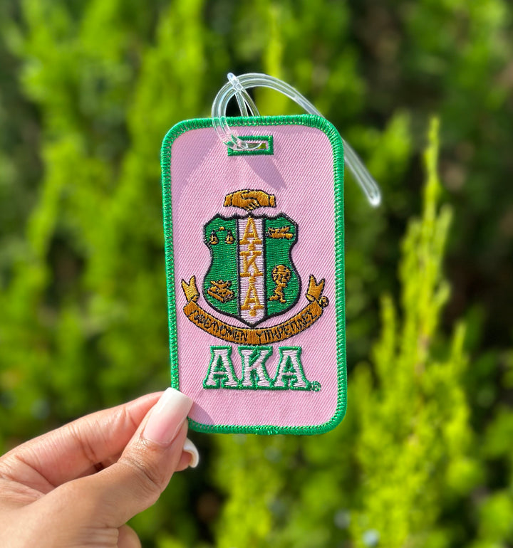 ♡ High-Quality Embroidered Tag featuring Shield and Greek Letters