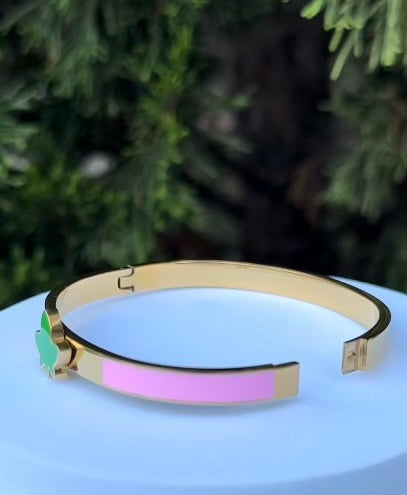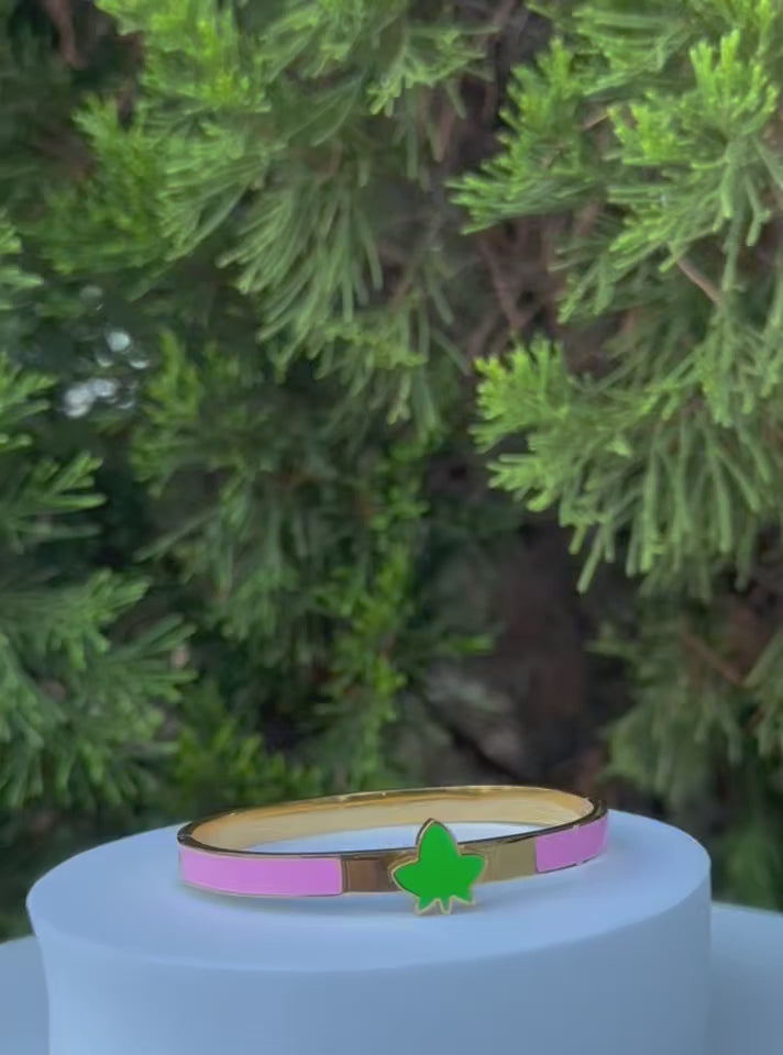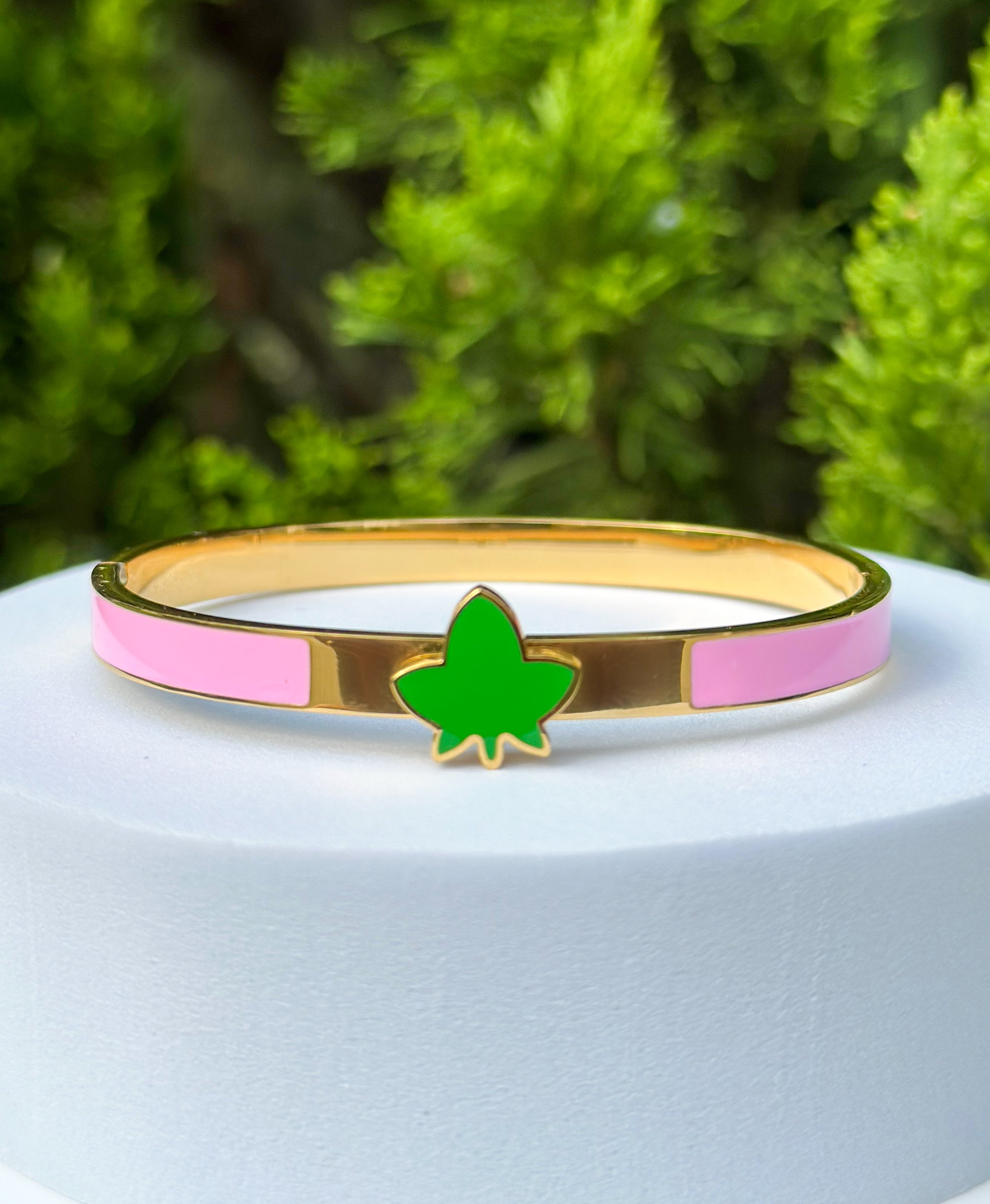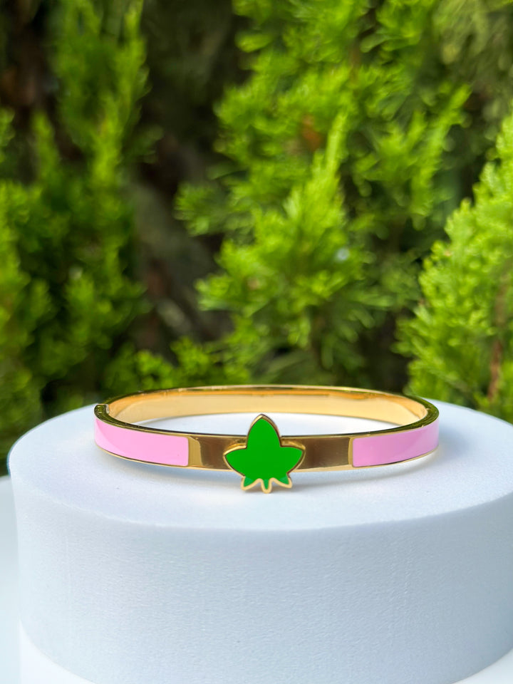 Introducing our AKA Green Ivy Leaf Bangle Bracelet, designed to showcase elegance and style. This beautiful bracelet is the perfect accessory or gift for any occasion!