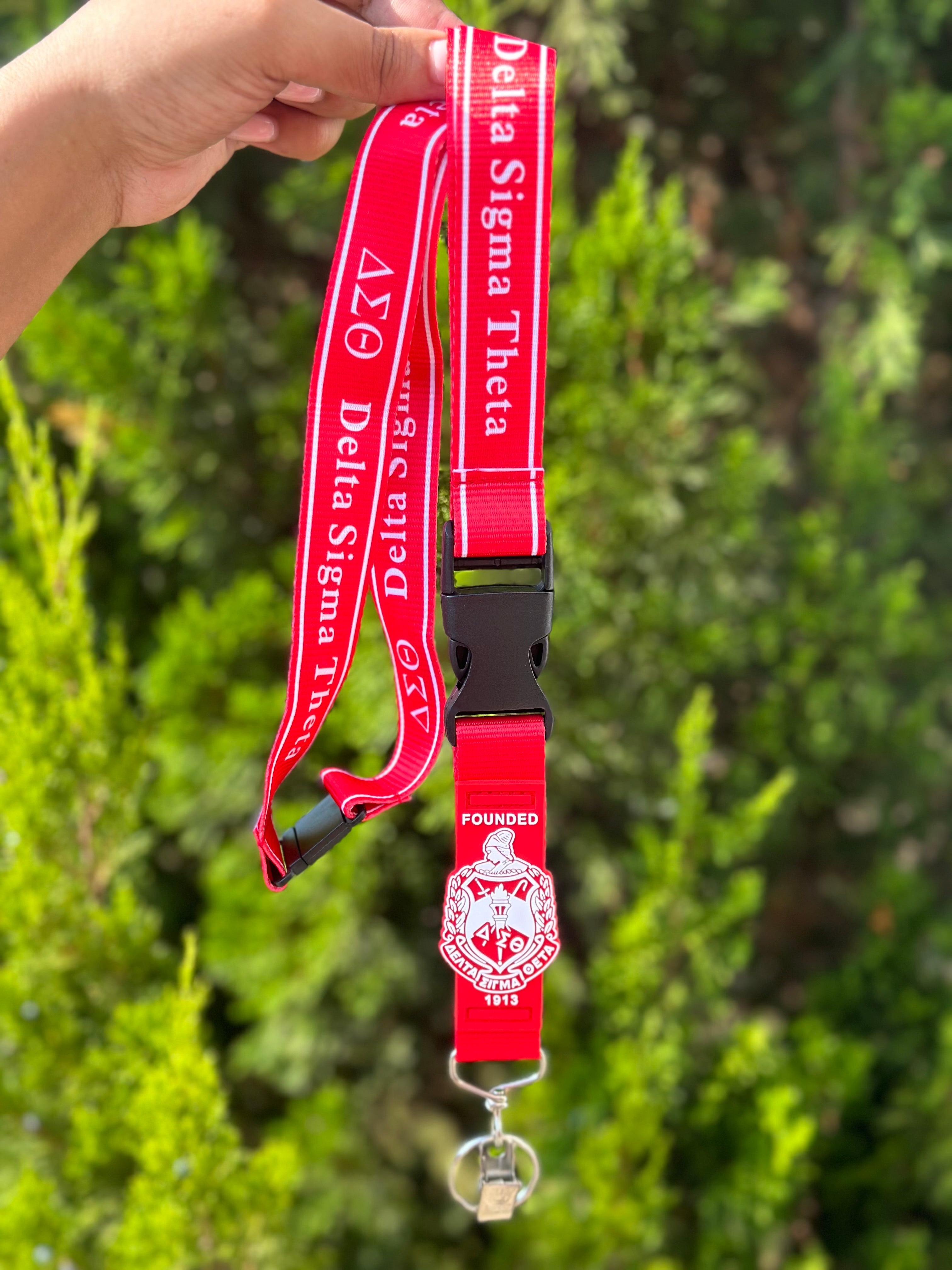 Introducing our Delta Sigma Theta Lanyard, featuring a striking design in red and white, complete with the sorority shield.
