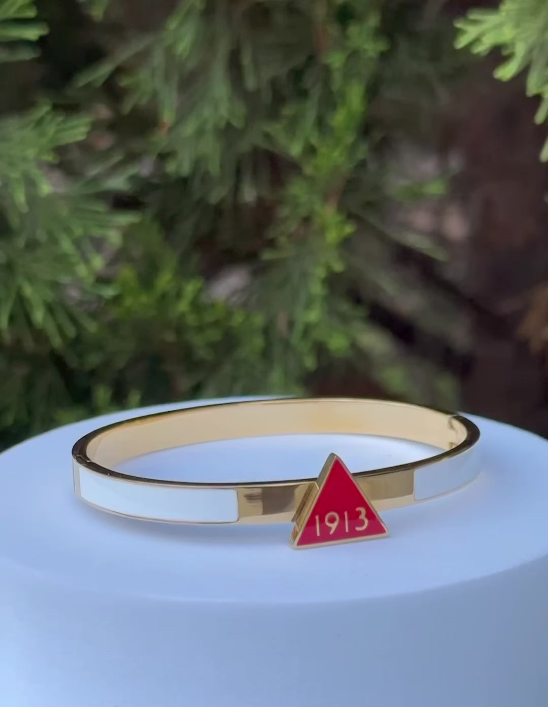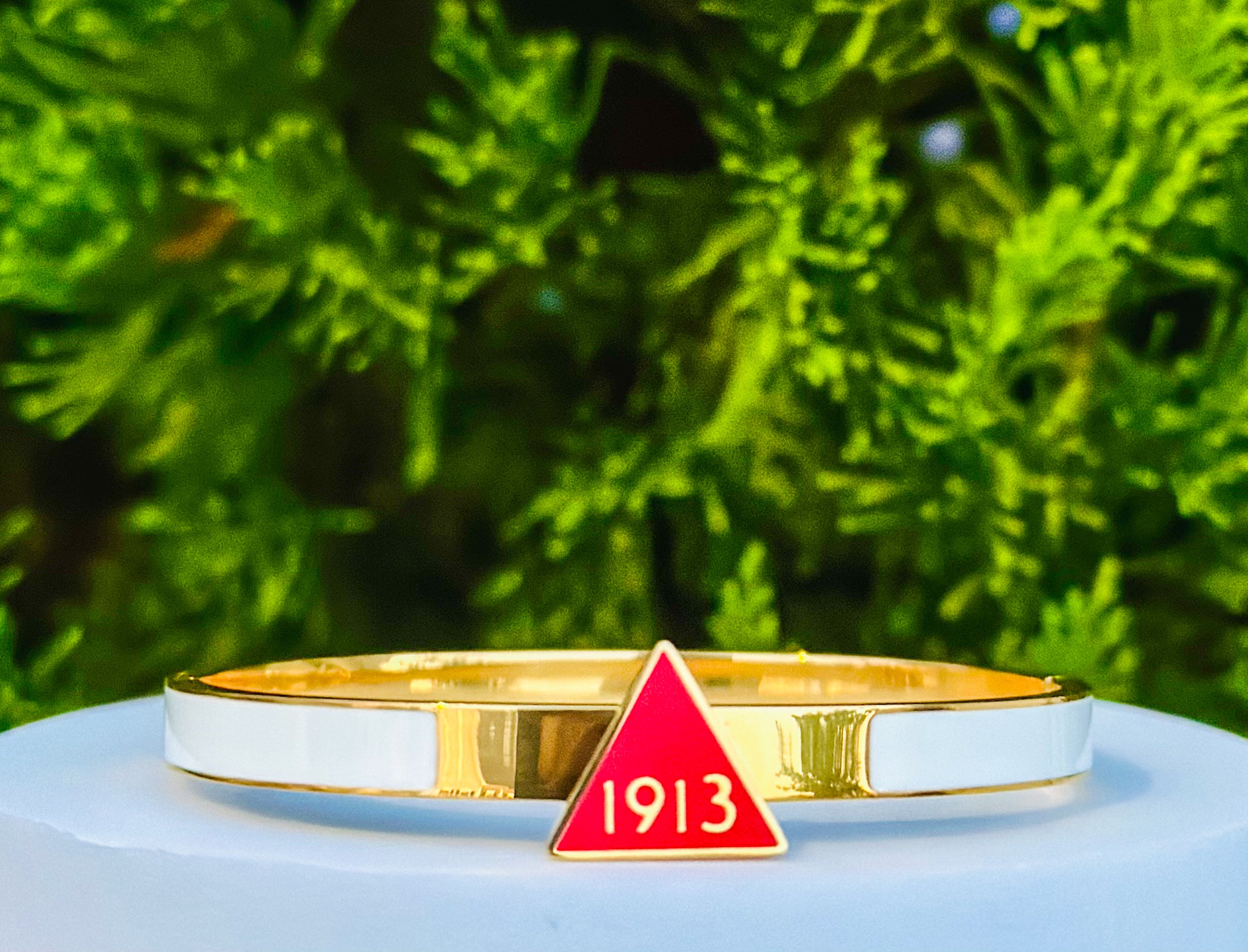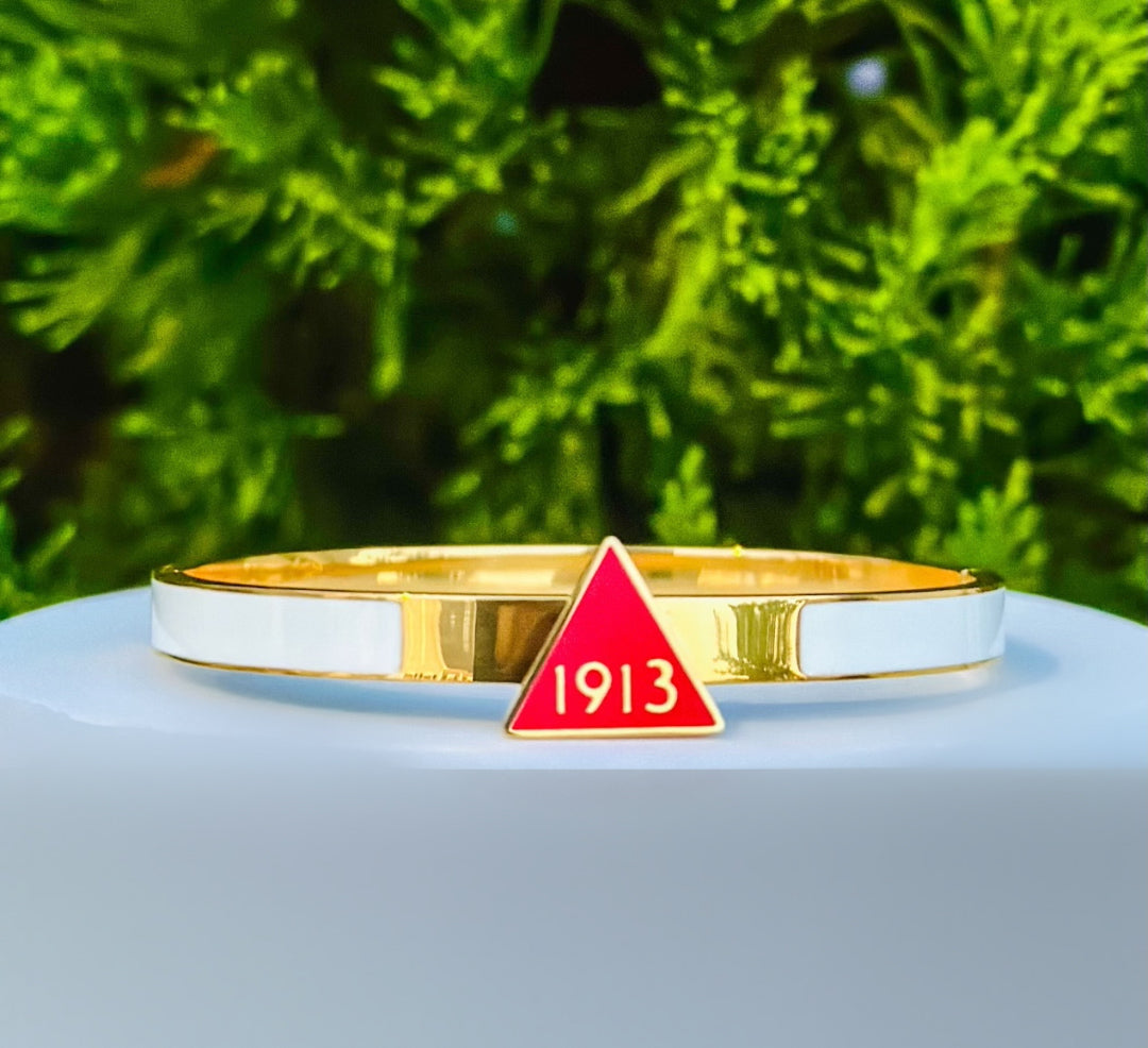 Introducing our Delta Sigma Theta Gold 1913 Bangle Bracelet, designed to showcase elegance and style. This beautiful bracelet is the perfect accessory or gift for any occasion!
