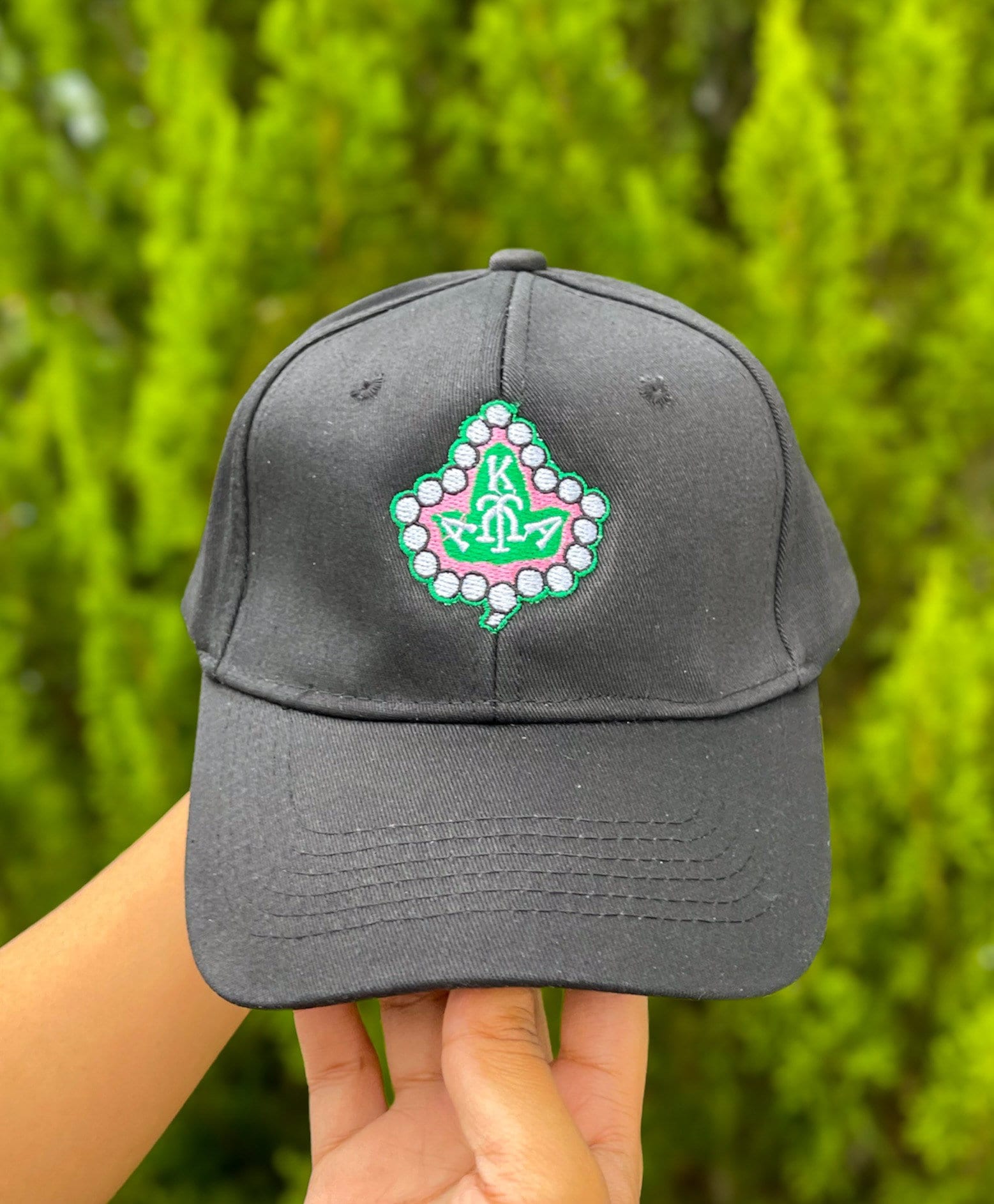 This cute black AKA Inspired Ivy Leaf Cap has been designed and created by us at Greek-ish & Co.
