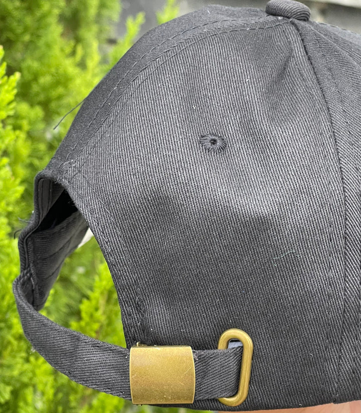 ♡ The hat is black with an adjustable gold strap. The ivy leaf logo is embroidered.