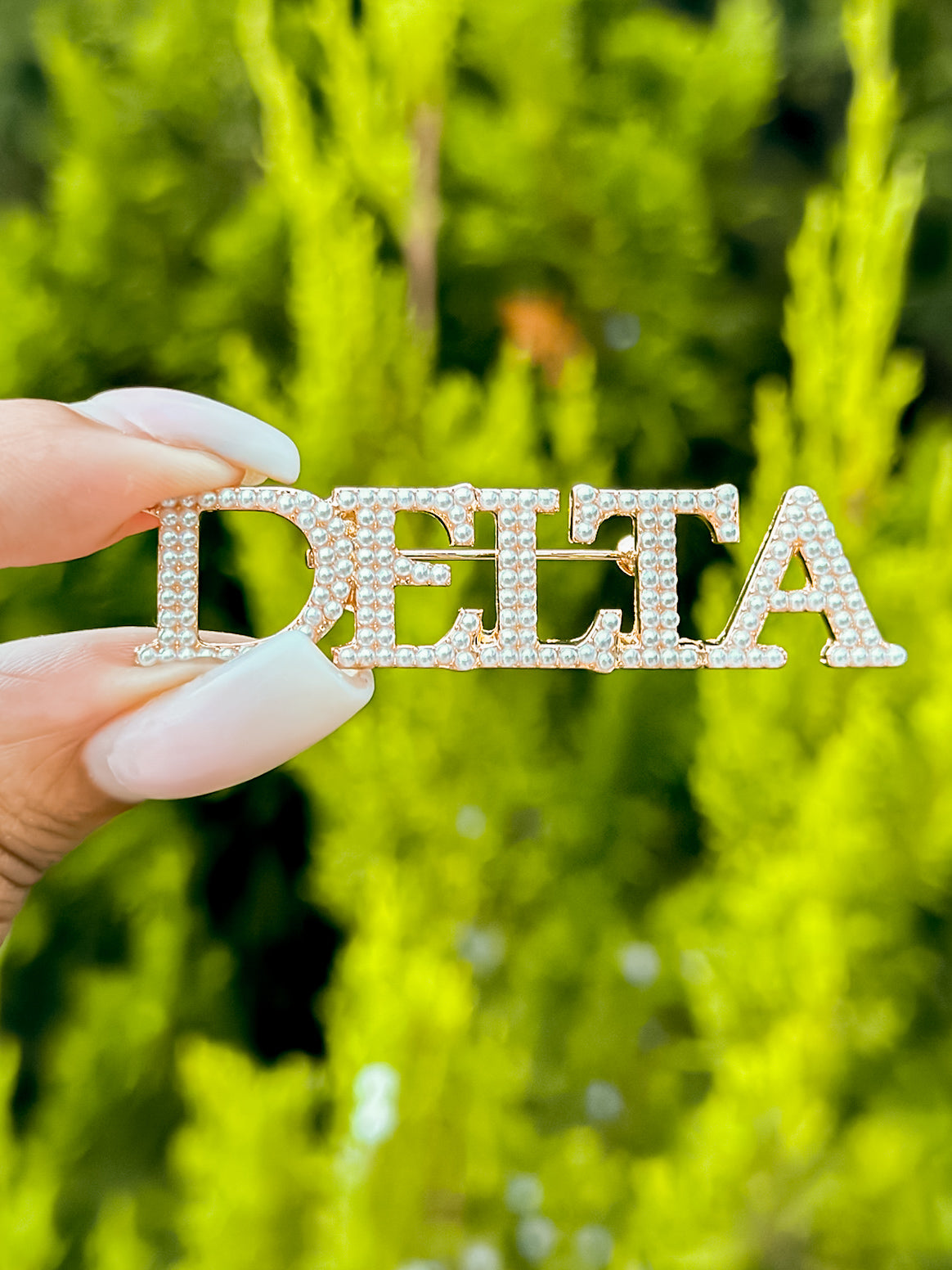 This little cute Delta Inspired Pearl Brooch pin has been designed and created by us at Greek-ish & Co.