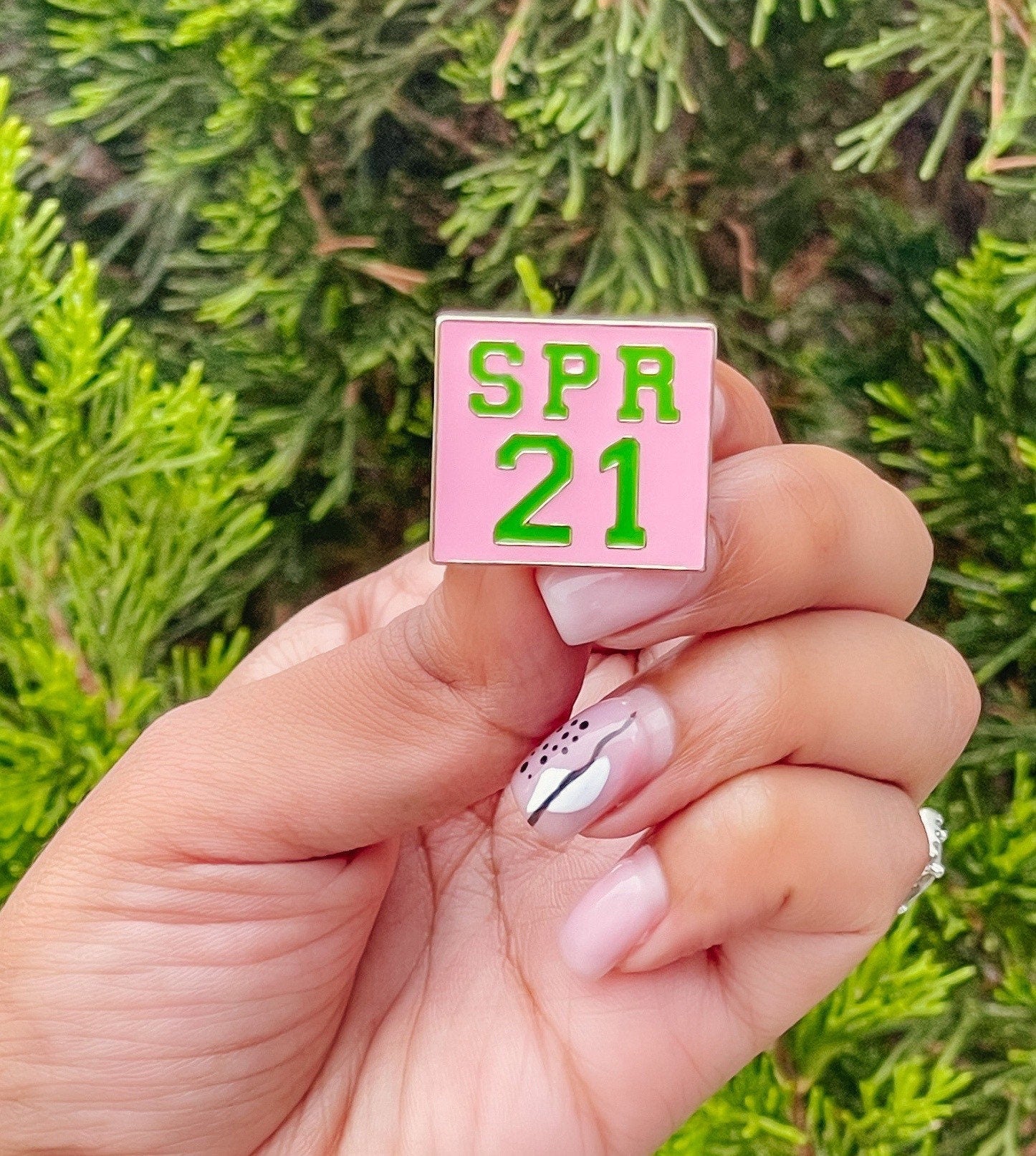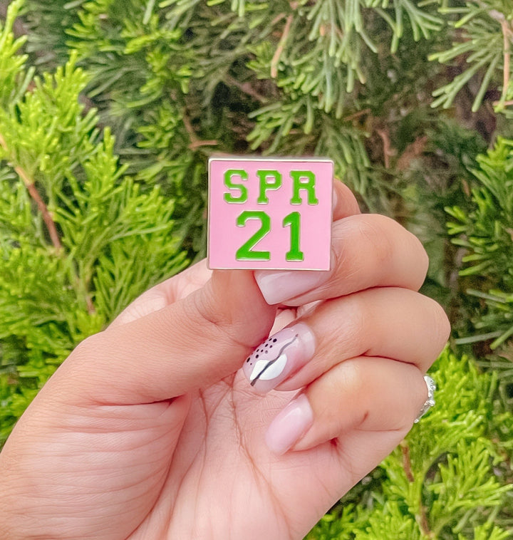 This little cute AKA Inspired Pink & Green Spring 2021 lapel pin has been designed and created by us at Greek-ish & Co.