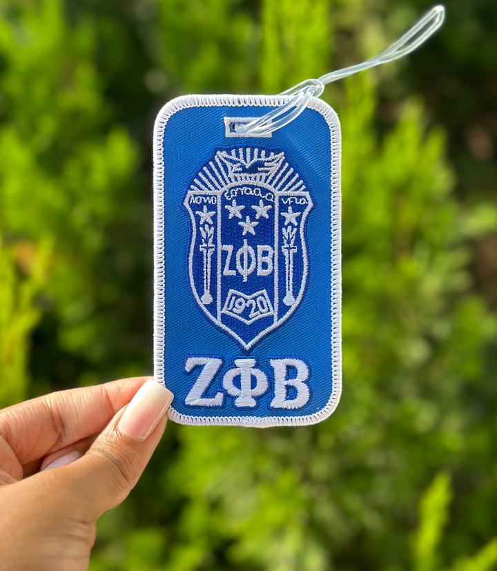 ♡ Durable embroidered tag featuring Shield and Greek Letters.